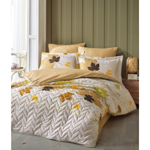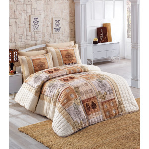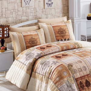 Гарантирано качество от  PLATOVE.BG   Реални снимки Състав:  100% ПАМУЧЕН САТЕН Луксозен спален комплект от 100% ПАМУЧЕН САТЕН Основен цвят: Бежов Комплекта за спалня: 1бр шалте (покривало) - 270х260см 2бр декоративни калъфки - 50х70см 1бр декоративна калъфка - 20х25см